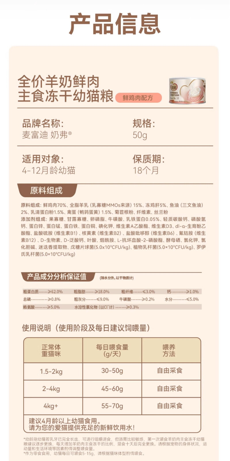 麦富迪 奶弗全价羊奶鲜肉主食冻干猫粮 幼猫/成猫15g/50g