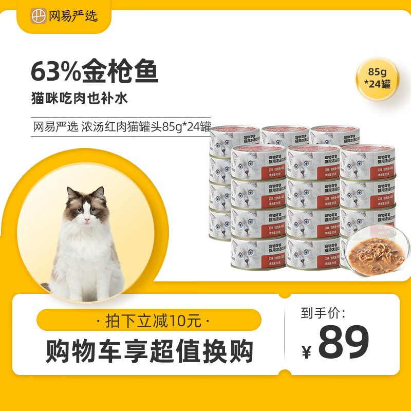 网易严选猫罐头 宠物幼猫成猫通用湿粮零食 猫用浓汤红肉罐头 金枪鱼口味85g*24罐