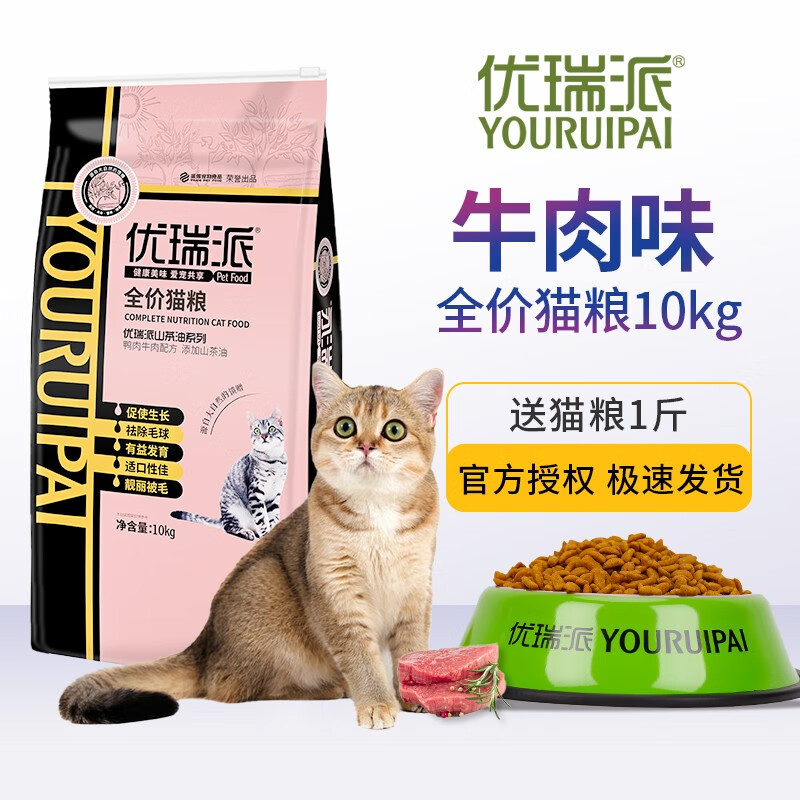 优瑞派猫粮 幼猫成猫山茶油精华猫咪主粮 全价通用粮 牛肉味10kg20斤