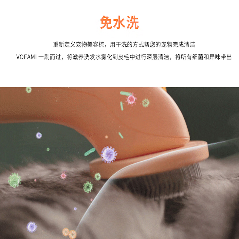 Vofami宠物免洗抑菌清洁梳猫狗通用除螨洗澡液香波去除臭持久留香放心舔毛宠物用品洗护 杏色免洗梳 抑菌液*1瓶