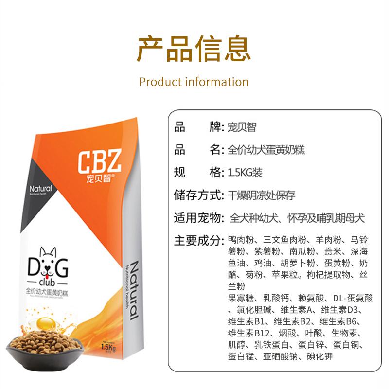 贝意品狗粮1.5kg1-12月全价幼犬蛋黄奶糕粮贵宾泰迪金毛全犬种通用型3斤 全犬种幼犬