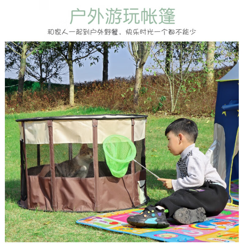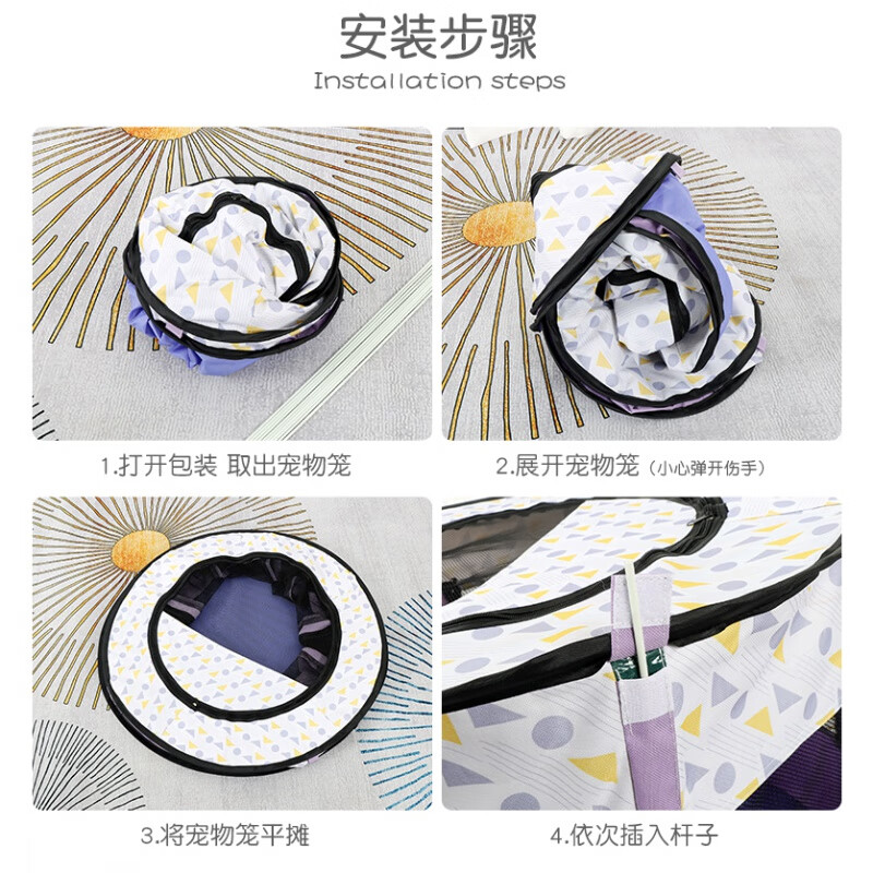 HKML*猫笼子家用室内小型犬笼子便携户外公园猫可折叠猫咪窝宠物犬猫笼 活力黄 (小型犬适用)直径72*高40
