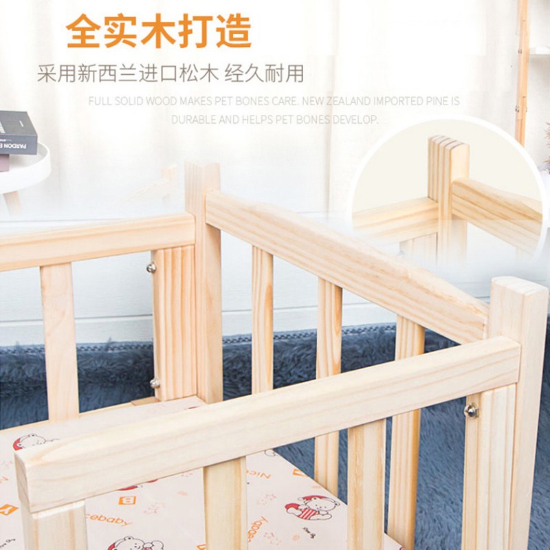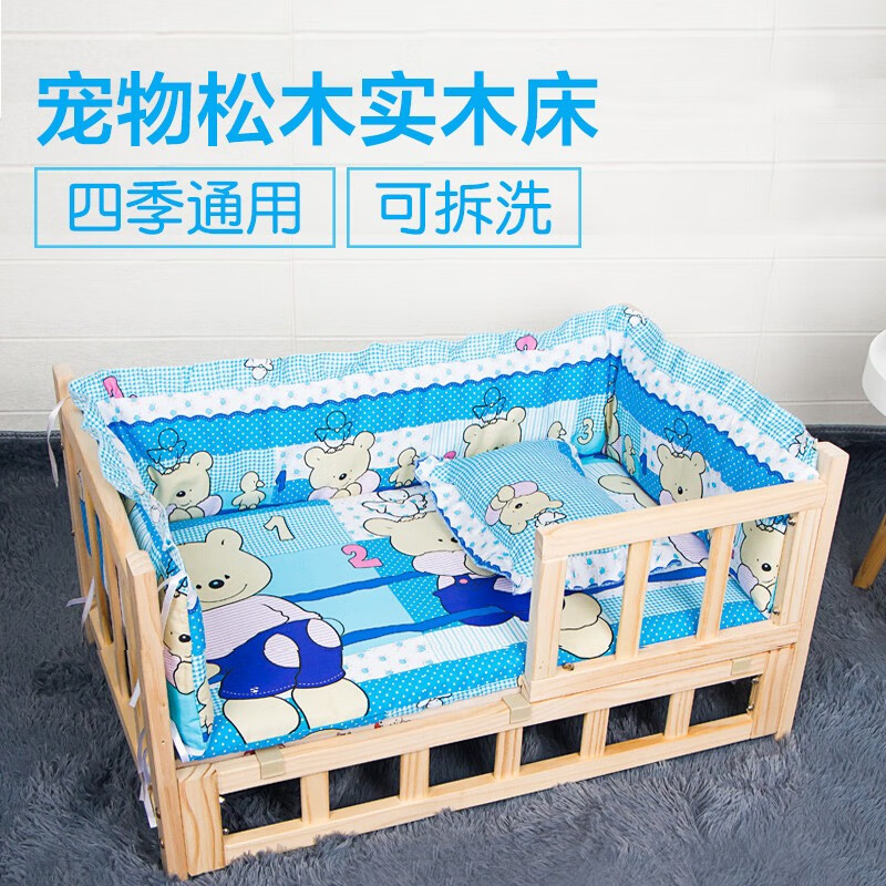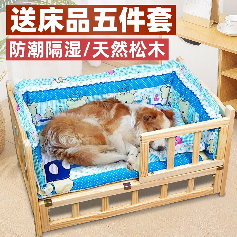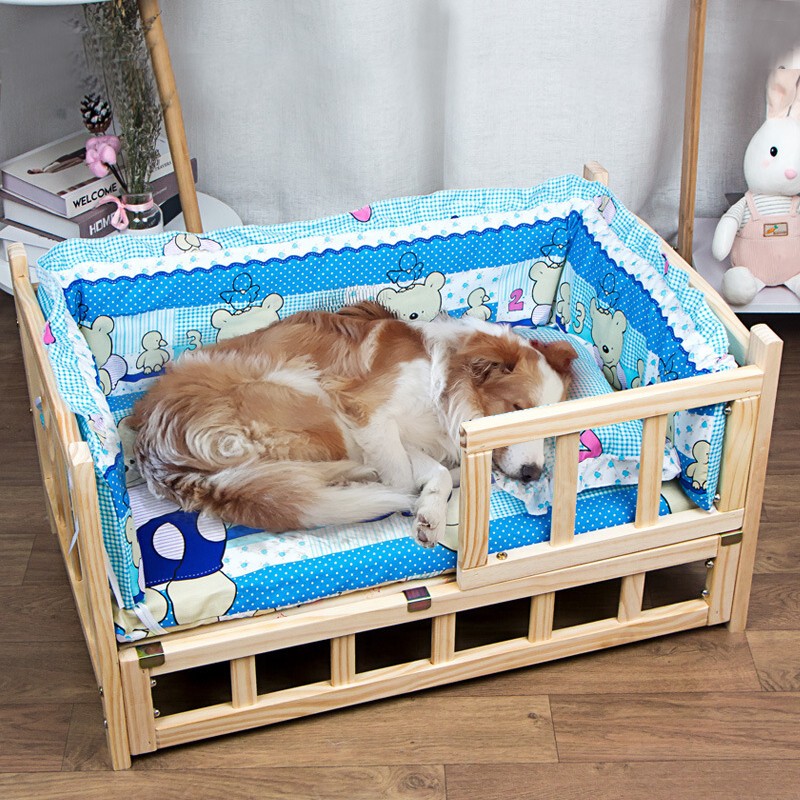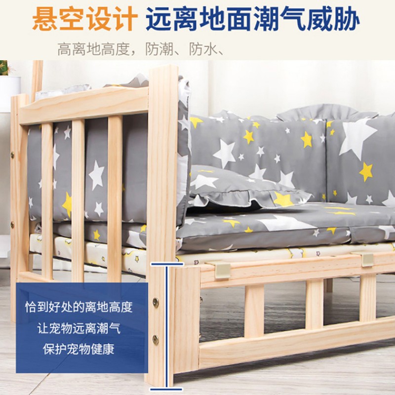 茨格曼 实木狗床狗窝冬季保暖猫床四季通用公主可拆洗小型中型大型犬猫咪泰迪离地宠物床 蓝色L码 (建议60斤以下) *
