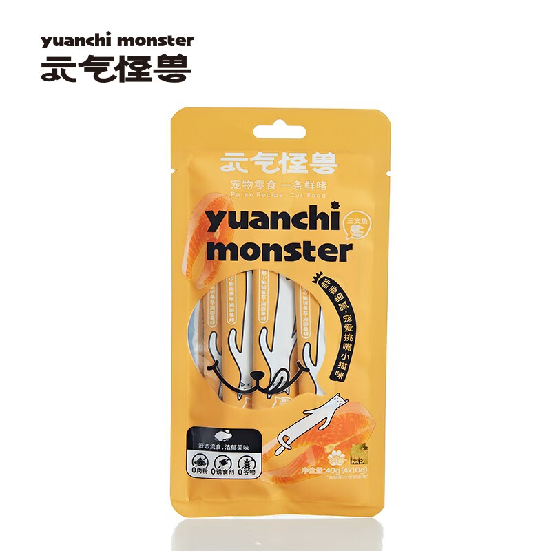 元气怪兽 猫零食猫条幼猫成猫营养猫咪猫湿粮三文鱼味40g(10g*4条)