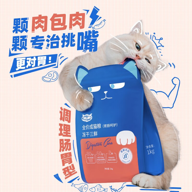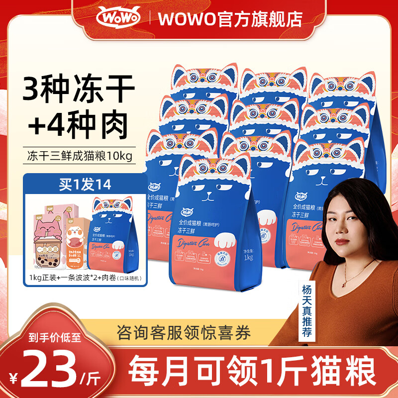 【官方旗舰】WoWo喔喔猫粮幼猫成猫冻干三鲜全价高蛋白增肥发腮配方无谷猫干粮 10KG/20斤