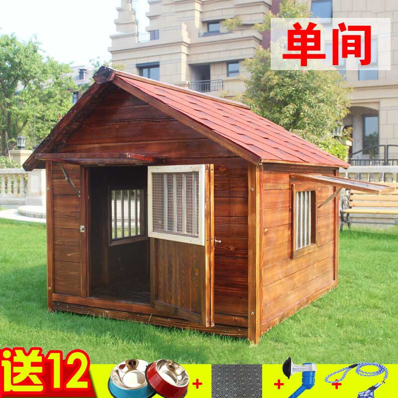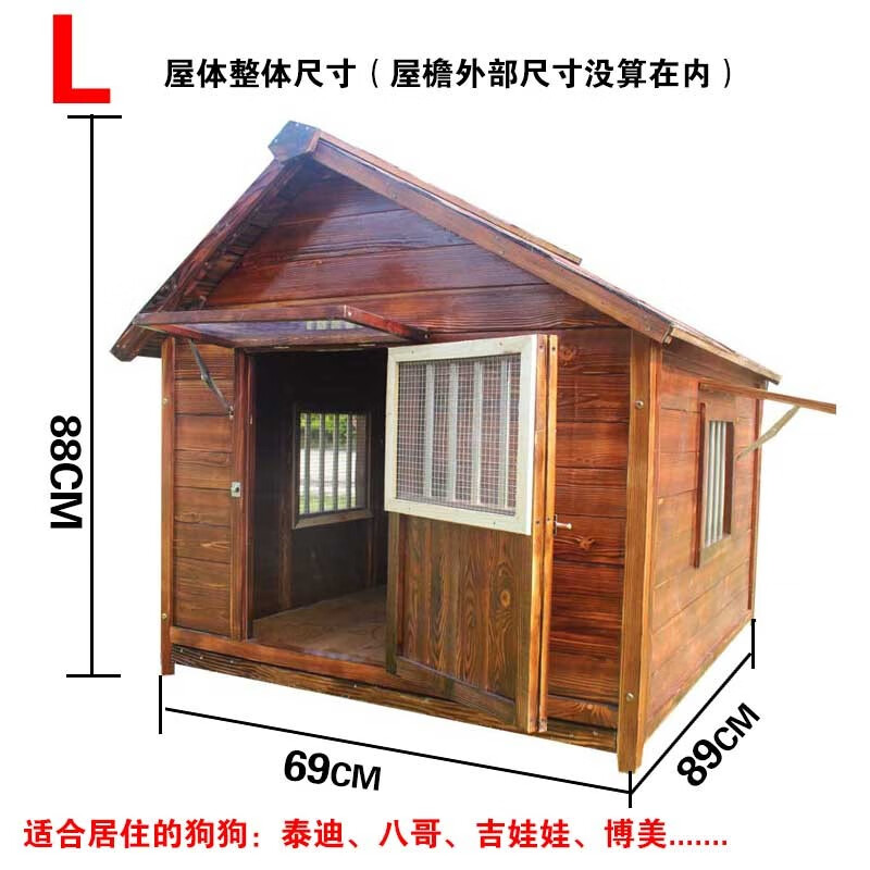RUNPET狗屋防水实木狗窝中型犬泰迪金毛狗房子防雨室外四季通用宠物别墅 L单间 单边窗带纱网(不包安装) 实木狗屋(自己安装)