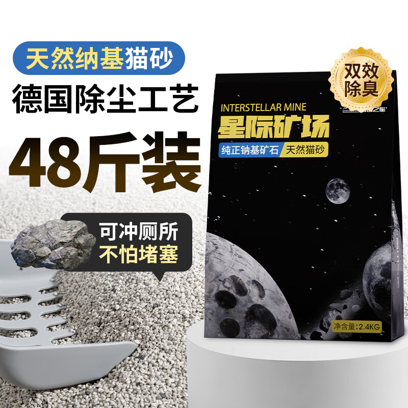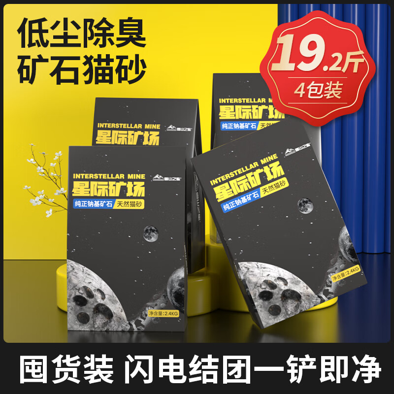 泰格宠物天然钠基矿石猫砂低尘除臭去味吸水结团膨润土混合猫沙可冲厕所 19.2斤【4包装】全新灰袋升级天