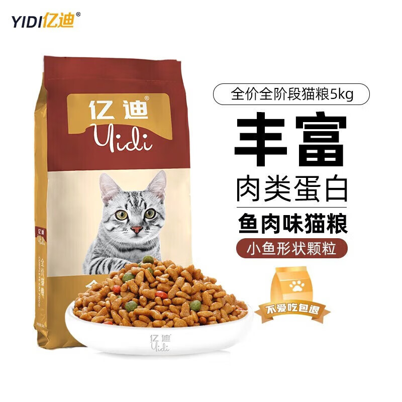 亿迪 成猫幼猫增肥营养发腮蓝猫英短田园猫橘猫全价通用型 鱼肉味全价猫粮-5kg