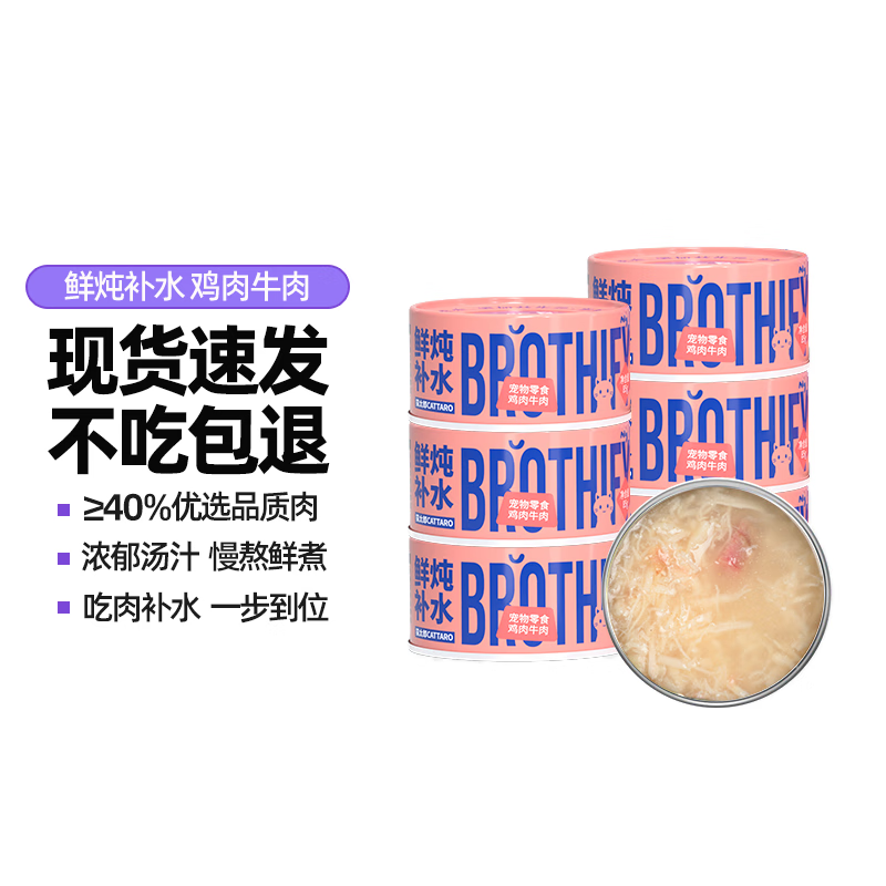 猫太郎 猫罐头成幼猫增肥发腮白肉浓汤猫零食补水湿粮 鸡肉牛肉85g 6罐
