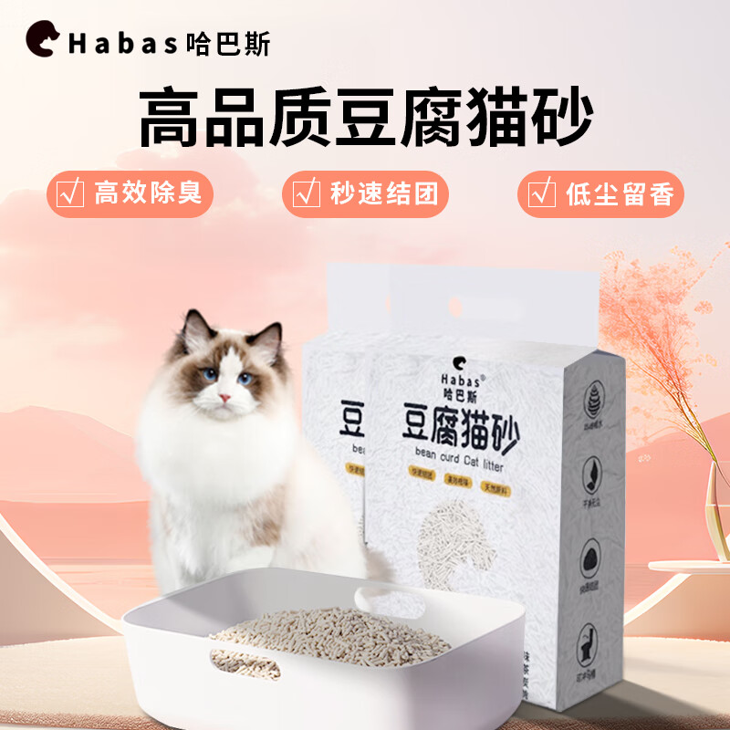 哈巴斯(Habas) 豆腐猫砂10kg公斤混合猫砂 6L大袋装强除臭无尘结团吸水可冲厕所 原味豆腐猫砂- 6L 2袋 (约5kg)