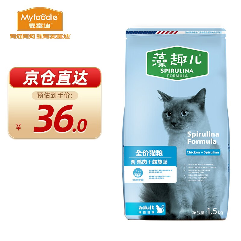 麦富迪 猫粮 藻趣儿全价猫粮蓝猫英短美短美毛靓肤成猫粮 鸡肉成猫丨1.5kg