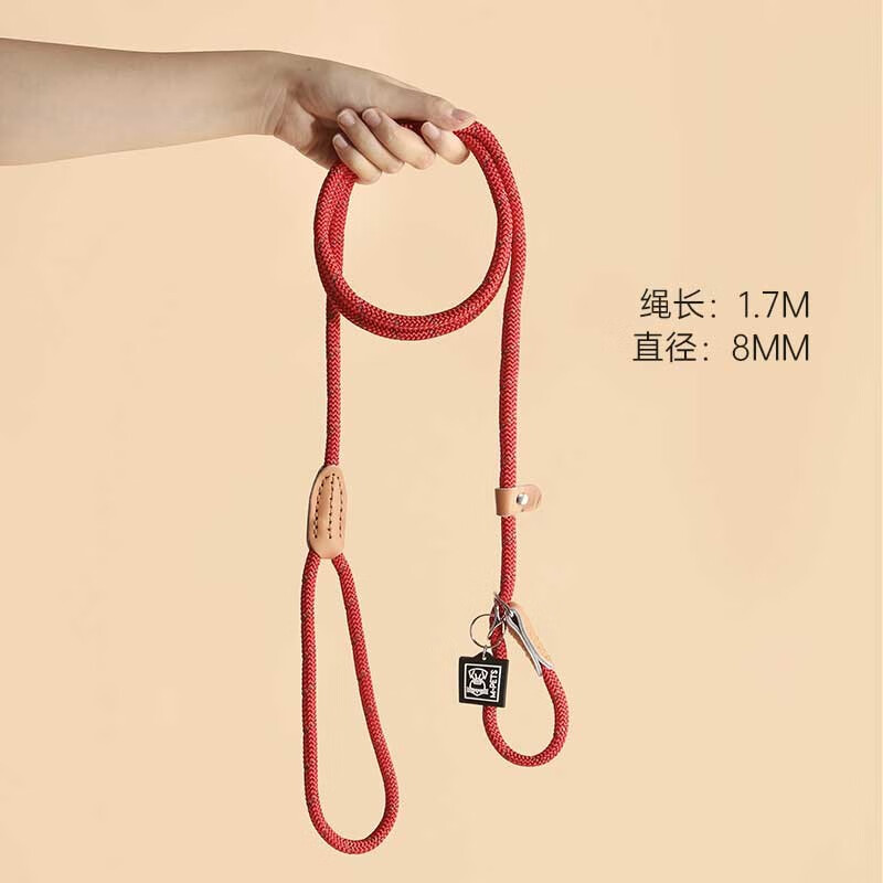mpets狗狗牵引绳牵引狗绳p绳大型犬金毛p链狗绳子中小型犬柯基防爆冲遛狗链子 上海可发可配送 红色1.7m【20斤内适用】