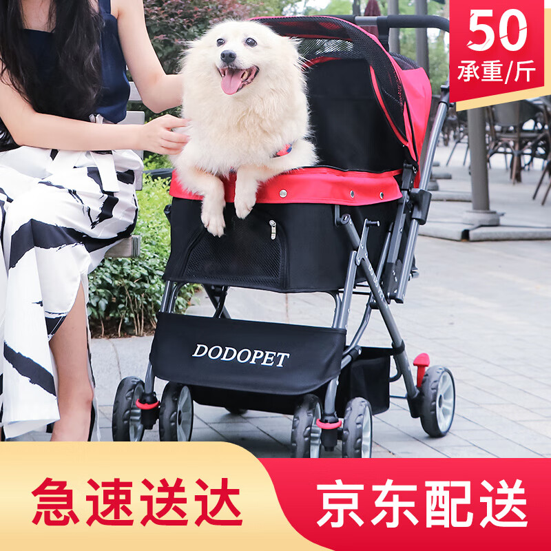 OIMG急速送达宠物推车狗狗手推车猫咪小推车宠物狗柯基柴犬出行遛狗车 红色【建议承重50斤内】