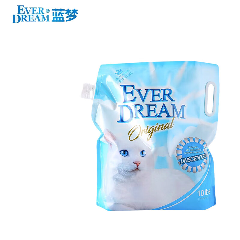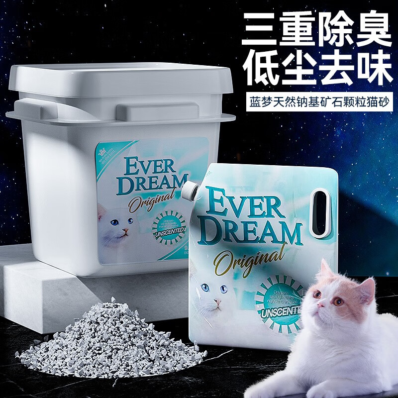 蓝梦(Ever Dream)天然钠基矿砂矿石猫砂活性炭除臭低尘破碎混合膨润土猫沙 天然钠基矿物-4.55kg(有嘴款)