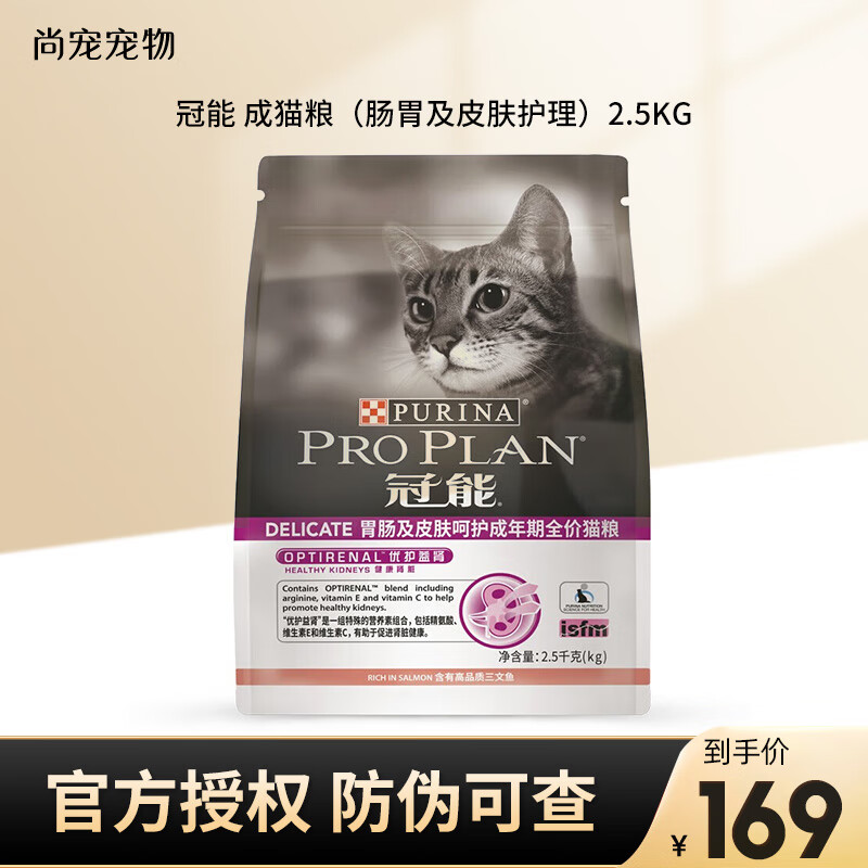 冠能(PRO PLAN)猫粮2.5kg 成猫幼猫全价猫粮 全阶段主食猫干粮 【胃肠及皮肤呵护】成猫粮 2.5kg
