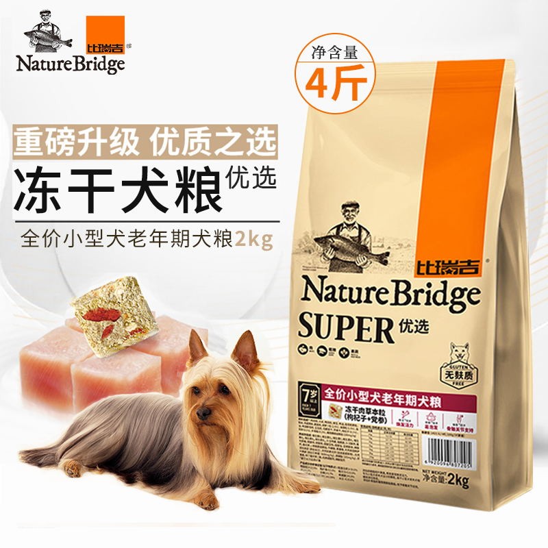 比瑞吉优选小型犬全价老年犬粮高龄犬通用型狗冻干肉草本粒老龄狗粮2kg 小型犬老年犬粮2kg 2000g
