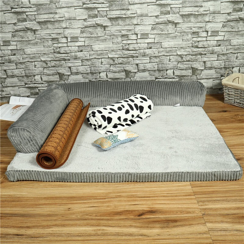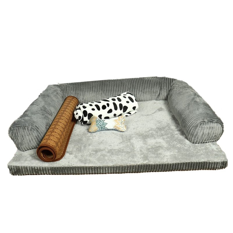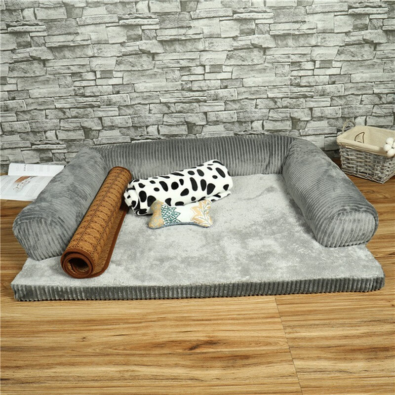 宝贝故事 狗窝四季通用 冬季保暖狗窝大型犬狗垫子冬季金毛柯基狗窝可拆洗 灰色三边(四件套) M-70*55*15cm 建议25斤内宠物
