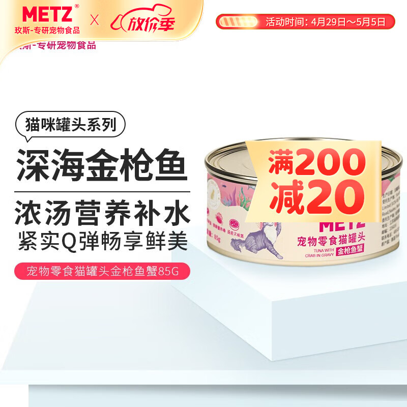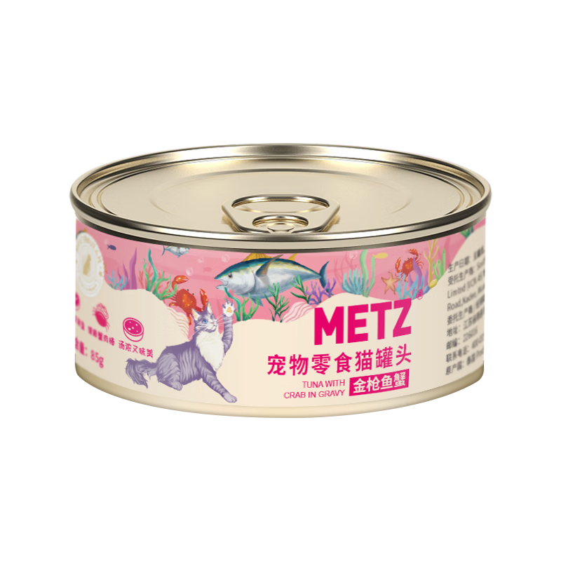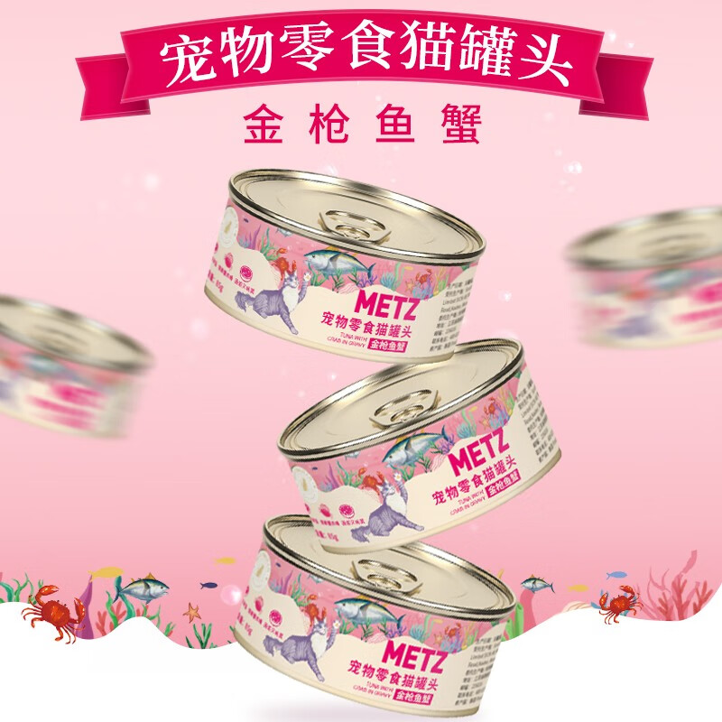 玫斯(metz)猫罐头慕斯罐幼猫成猫专用增肥发腮营养补水补钙宠物零食湿粮 金枪鱼蟹 85g*24罐