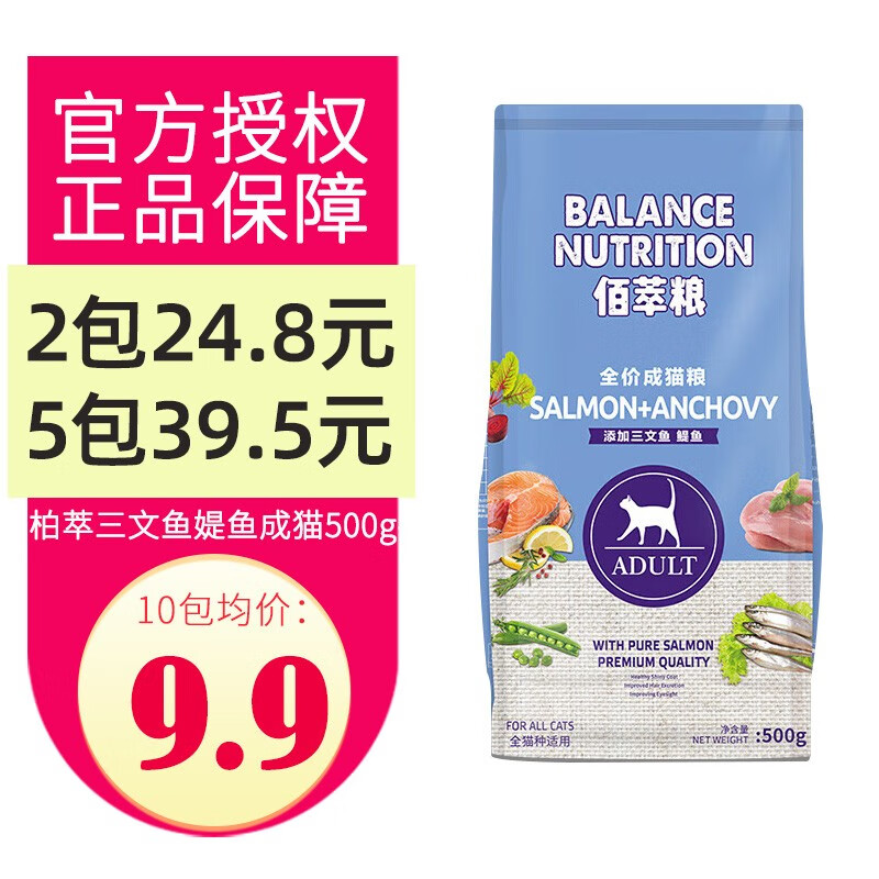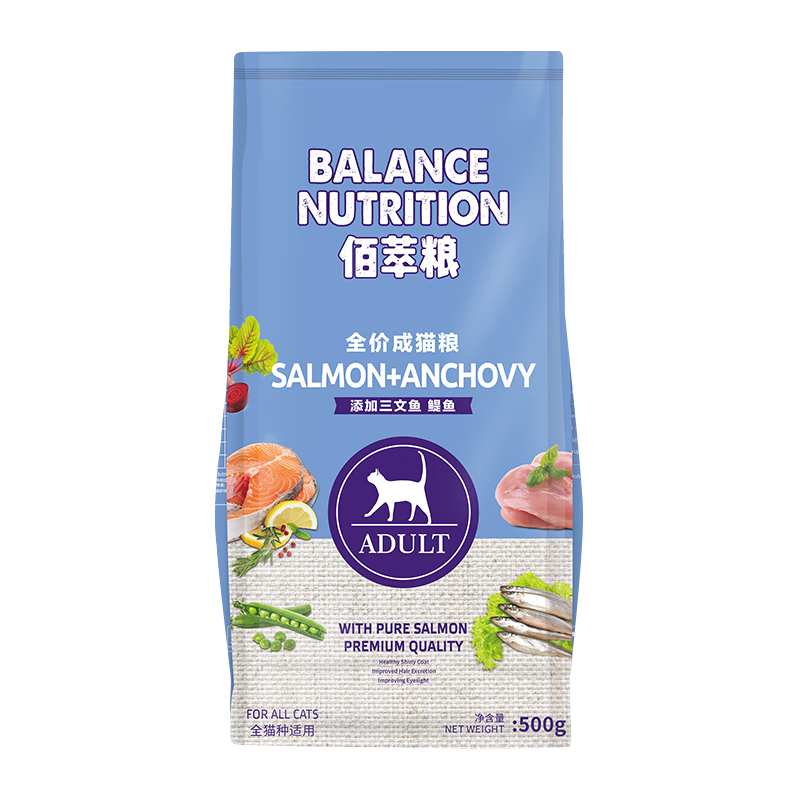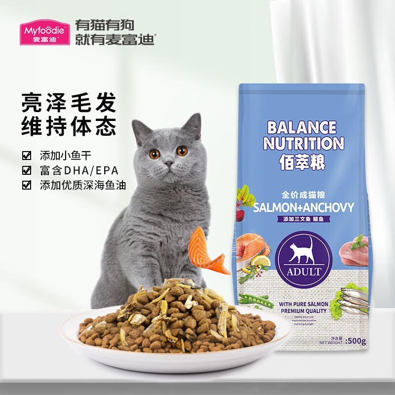 麦富迪(Myfoodie)佰萃猫粮成猫增肥营养发腮成年英短美短蓝猫国产猫食三文鱼鯷鱼 佰萃媞鱼成猫500g一包