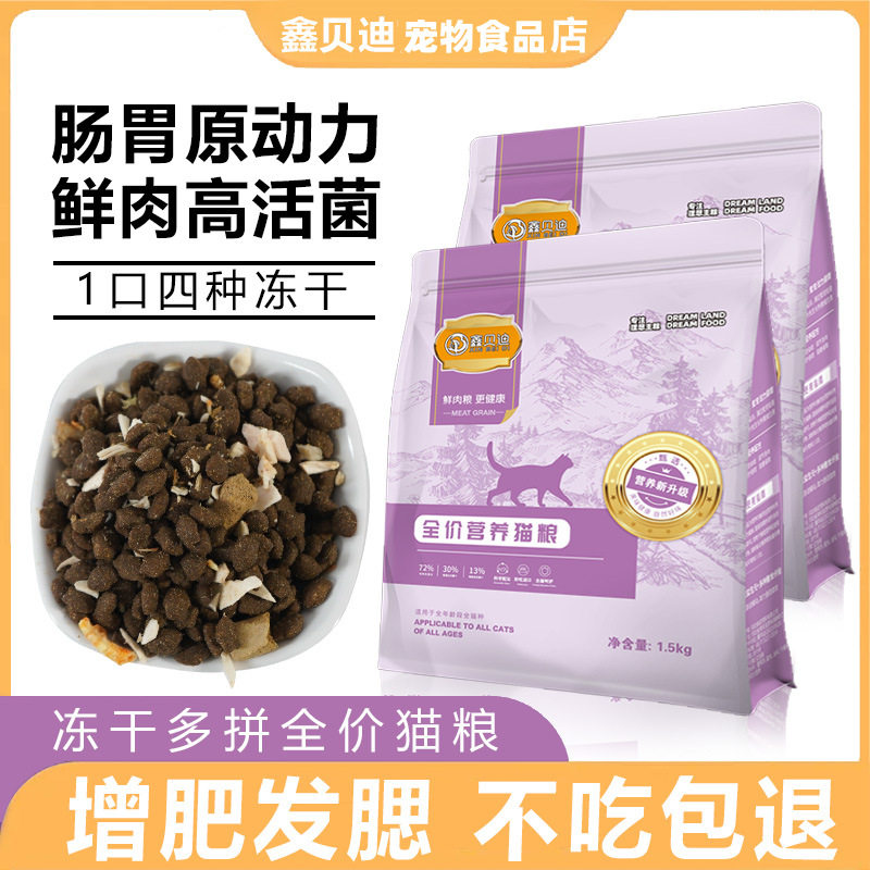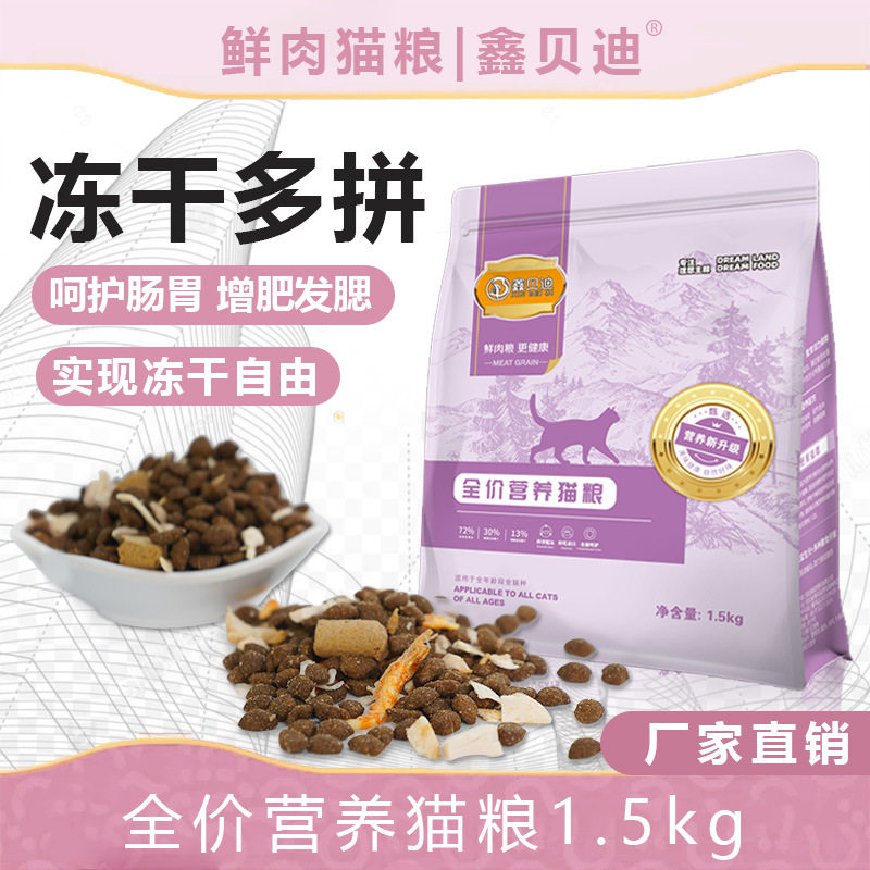 鑫贝迪宠物全价蛋黄鸡肉粒生骨肉磷虾鸡肝冻干幼猫成猫全阶段猫粮