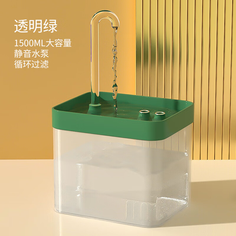 猫咪饮水机自动循环流动饮水器小猫喝水器狗狗水盆喂水碗宠物用品 透明绿-1500ml餸滤芯棉(静音 循环活水)