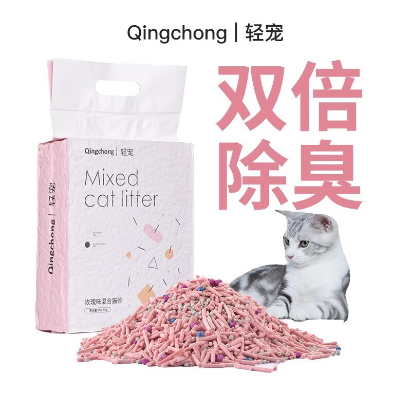 轻宠(Qingchong)可冲厕所混合豆腐猫砂除臭无尘奶香味豆腐砂膨润土猫沙10斤20斤 玫瑰味 混合猫砂7L-约5斤*2包
