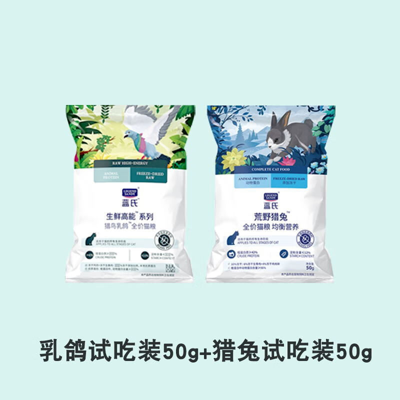 LEGENDSANDY蓝氏猎鸟乳鸽猫粮试吃用装夹心无谷全阶成猫粮烘焙猫粮小袋体验装 乳鸽50g 猎兔50g(共100g) 50g [老爸抽检]值得一试