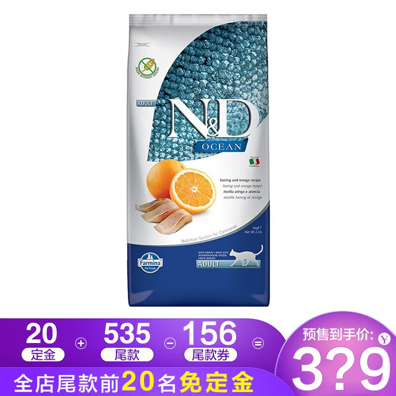 【预售】Farmina法米娜猫粮 原装进口无谷高蛋白增肥发腮成猫粮 鲱鱼甜橙成猫粮 5kg