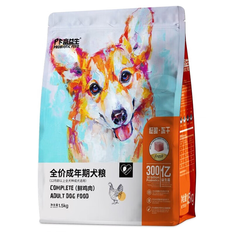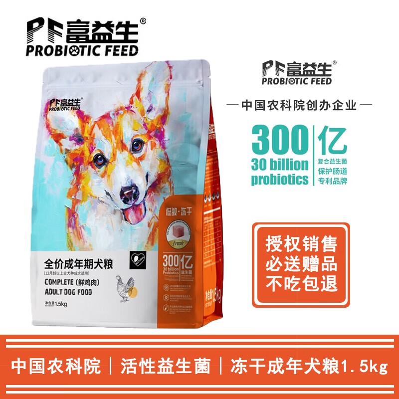 富益生(PF Probiotic Feed)鲜肉科技狗粮 美味健康低敏冻干鸡肉全价粮 低敏冻干成犬粮1.5kg