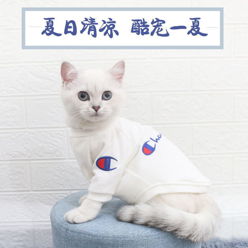 猫咪衣服可爱夏装薄款小奶猫春季秋装网红蓝猫无毛幼猫防掉毛公猫 白色 XS(建议体重2斤)