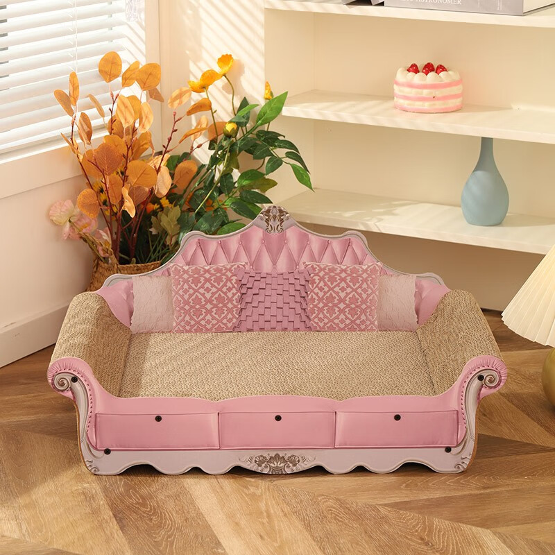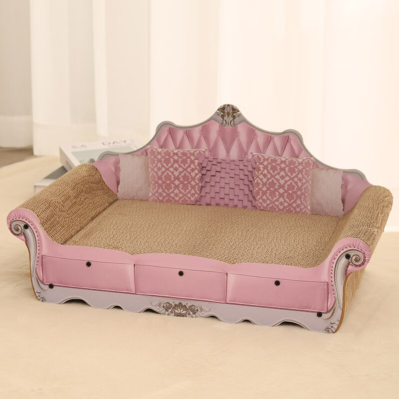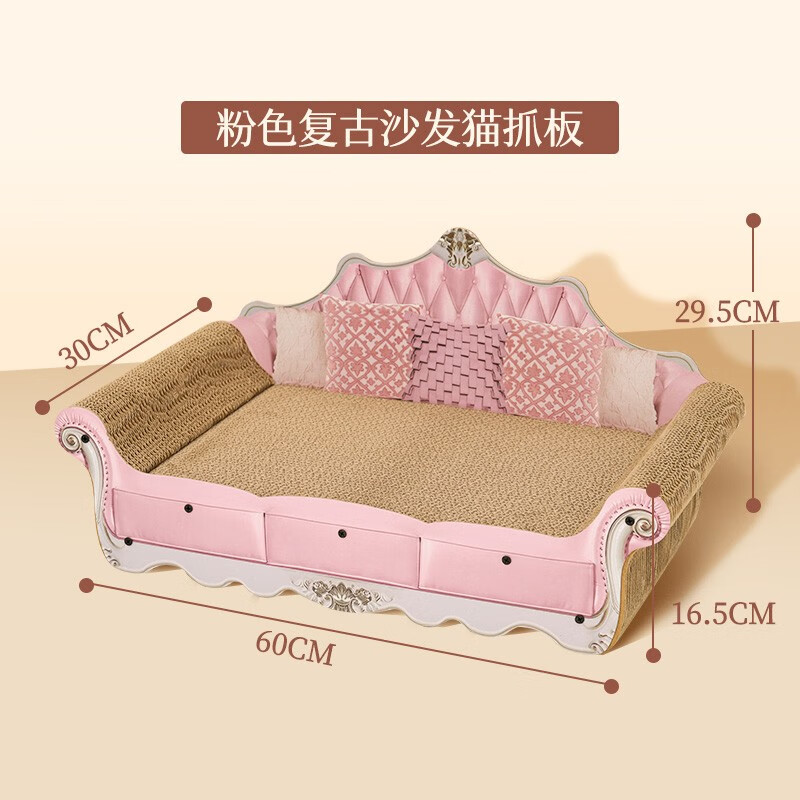 hoopet 猫抓板沙发耐磨不掉屑猫爪板猫窝猫床一体耐抓床贵妃椅大号超大号瓦楞纸专用宠物猫咪保护沙发 粉色 复古猫抓板【需组装】