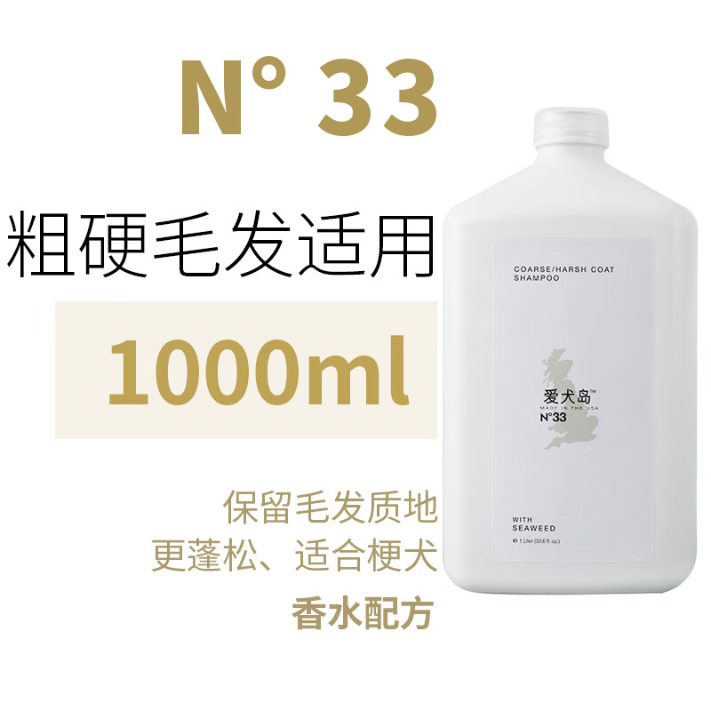 爱犬岛宠物狗狗沐浴露美国进口洗澡液香波 NO·33适合粗硬毛发犬 1000ml