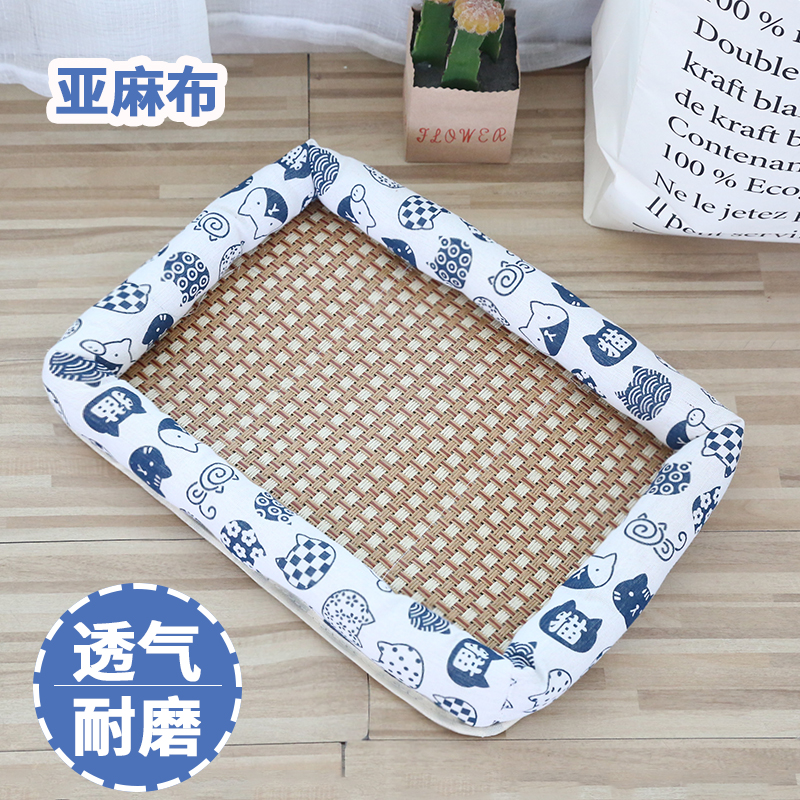 出极夏季凉垫小猫窝藤编凉席小狗垫子泰迪鹿犬床垫猫咪降温大狗凉席垫 和风福猫 玩具 小号(42*31)cm适5斤内宠物