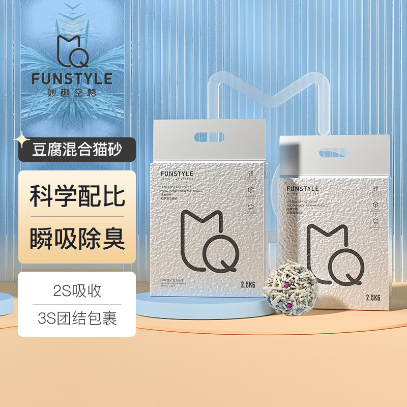 妙趣空格猫砂除臭豆腐猫砂膨润土去味无尘3合1混合猫砂猫用品猫沙 经典3合1混合猫砂2.5kg*2