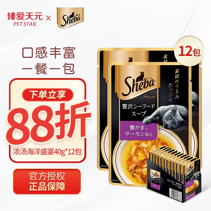 希宝(Sheba)妙鲜包软包猫湿粮sheba猫零食吞拿鱼味 浓汤海洋盛宴40g*12包