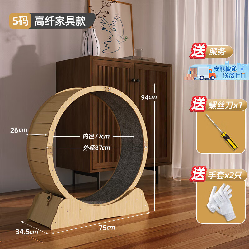 Hoopet猫咪跑步机低音跑轮实木猫爬架宠物健身减肥运动轮狗爬架布偶蓝猫减肥跑步转盘抓板猫滚轮猫玩具 【加宽跑道】高纤家具板-S(适合7斤内)