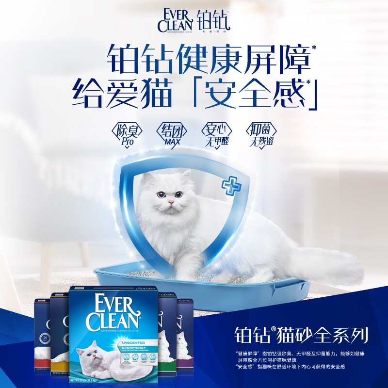 铂钻原装进口Ever Clean铂钻持久抗臭膨润土可混合豆腐猫砂绿标19kg