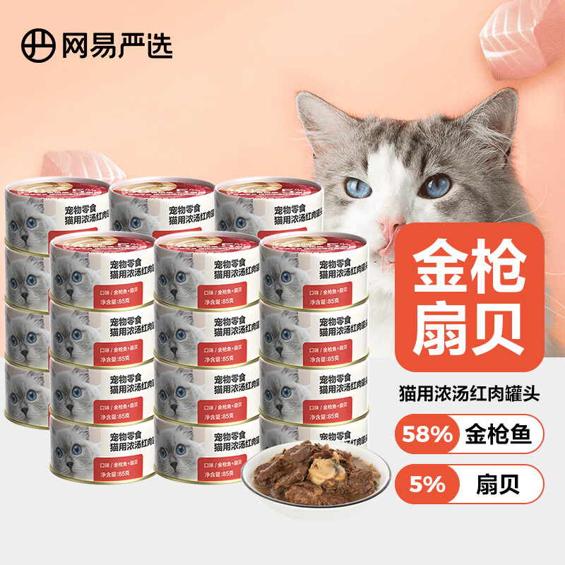 网易严选 猫用罐头 猫咪零食湿粮大块肉成幼猫营养补钙增肥 金枪鱼扇贝口味 85克*24罐