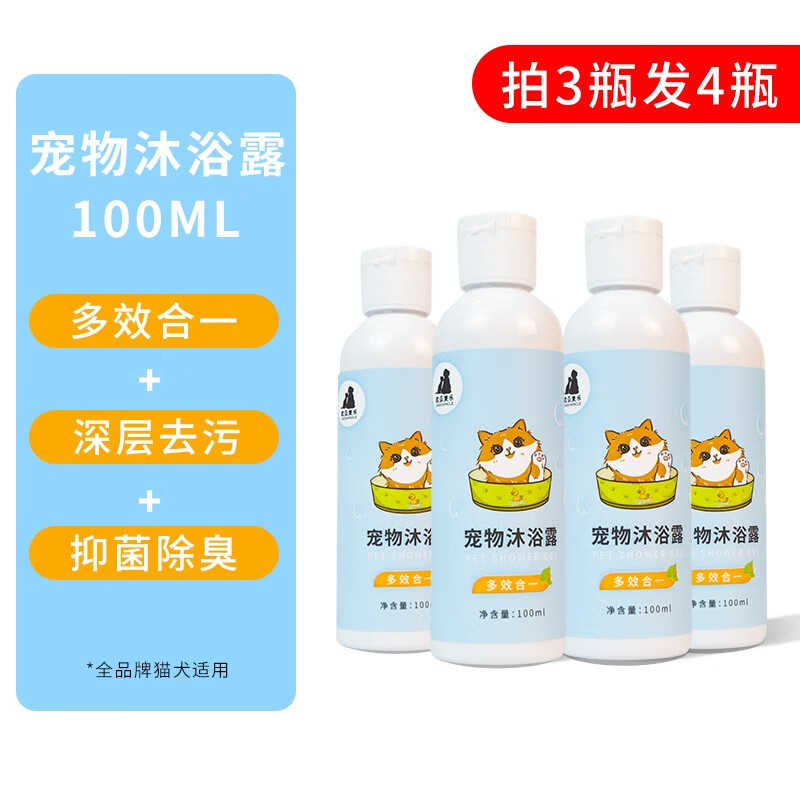 【欧亚美乐】宠物沐浴露抑菌除臭止痒滋润美毛蓬松植萃精华多效一合犬猫用金毛泰迪布偶洗澡液淋浴沐浴香波 宠物沐浴露100m买3瓶发4瓶