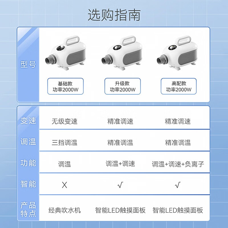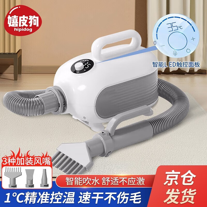 嬉皮狗(hipidog) 智能宠物吹水机大功率猫咪烘干机狗狗降噪拉毛神器家用宠物用品 高配款【智能LED触控面 负氧】 【精准控温调速】
