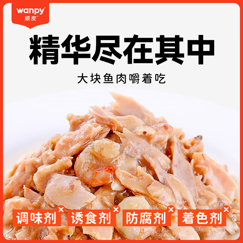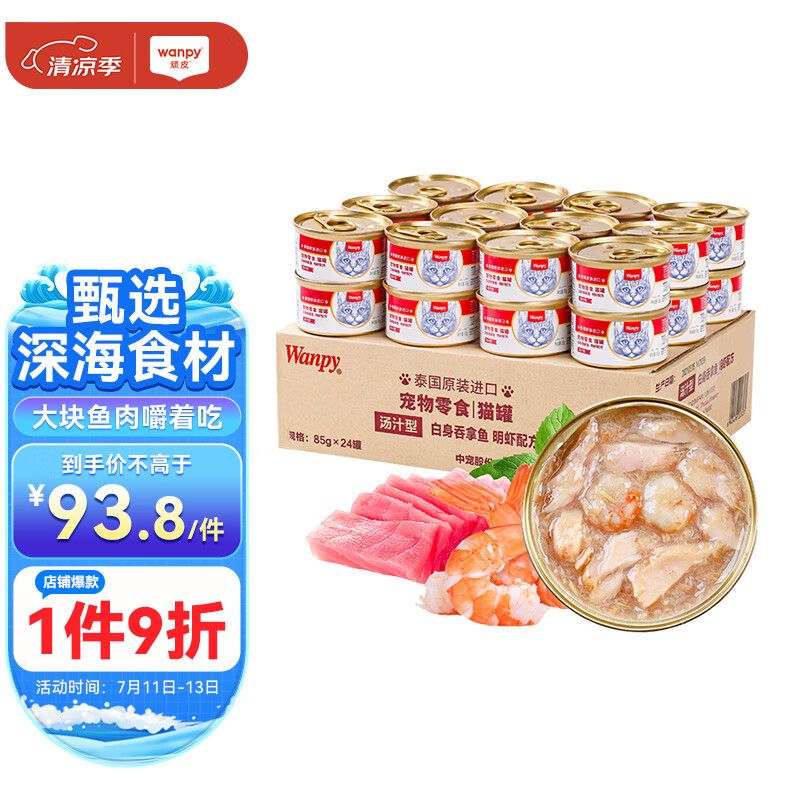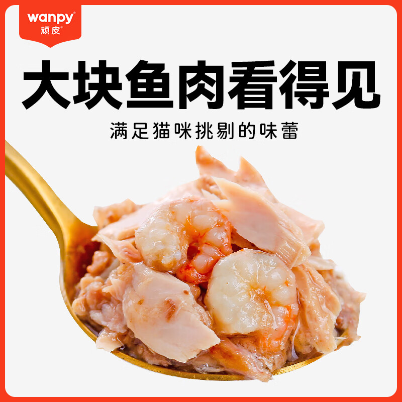 顽皮(Wanpy)泰国进口 猫罐头85g*24罐 (汤汁型)吞拿鱼 明虾成猫零食