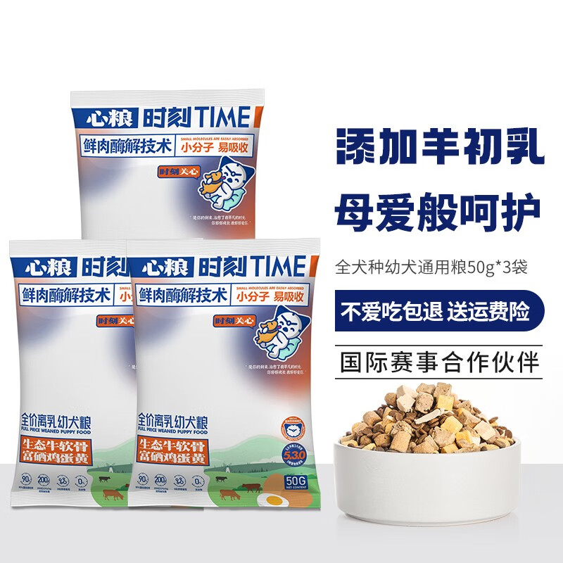 心粮 时刻狗粮中小型幼犬奶糕无谷低敏鸡肉鸭肉冻干粮 泰迪柯基全价粮 50g*3袋羊乳幼犬粮