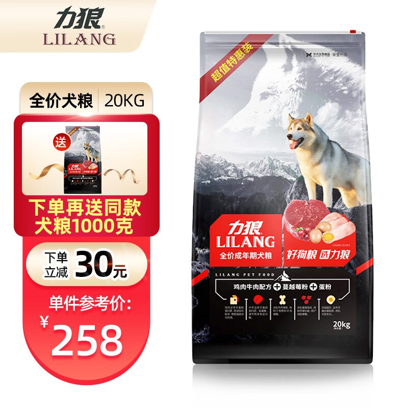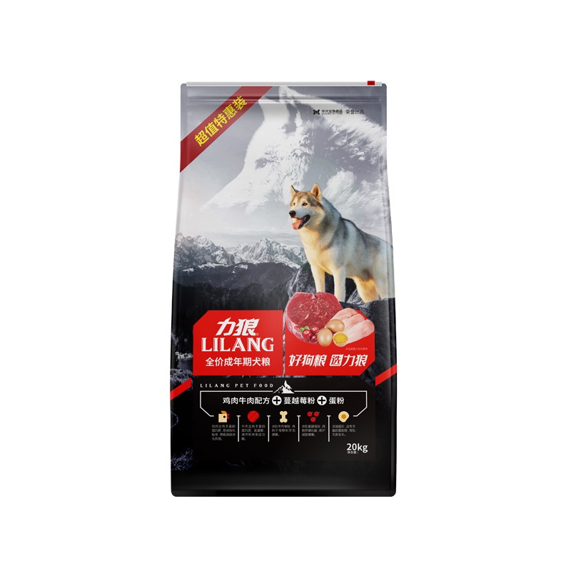 【不吃包退】力狼全价成犬粮20kg通用型成犬主粮哈士奇德牧拉布拉多大型犬犬粮金毛泰迪小型犬狗粮40斤 20kg