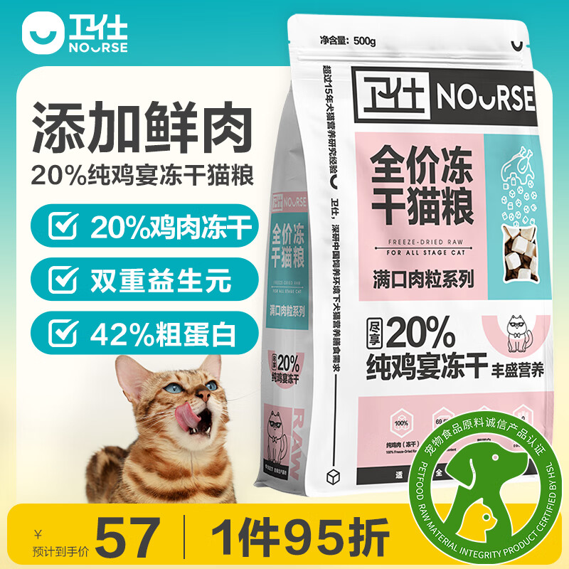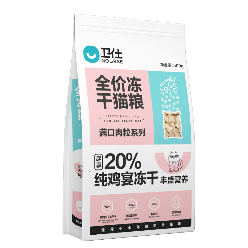 卫仕 20%鸡肉冻干全价猫粮 成猫幼猫0谷物猫粮宠物猫咪食品500g