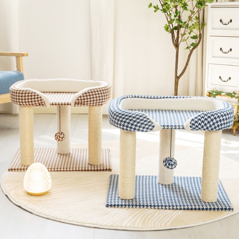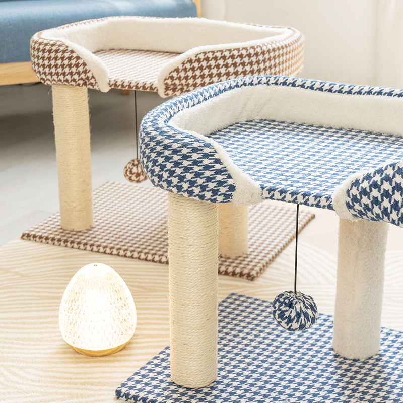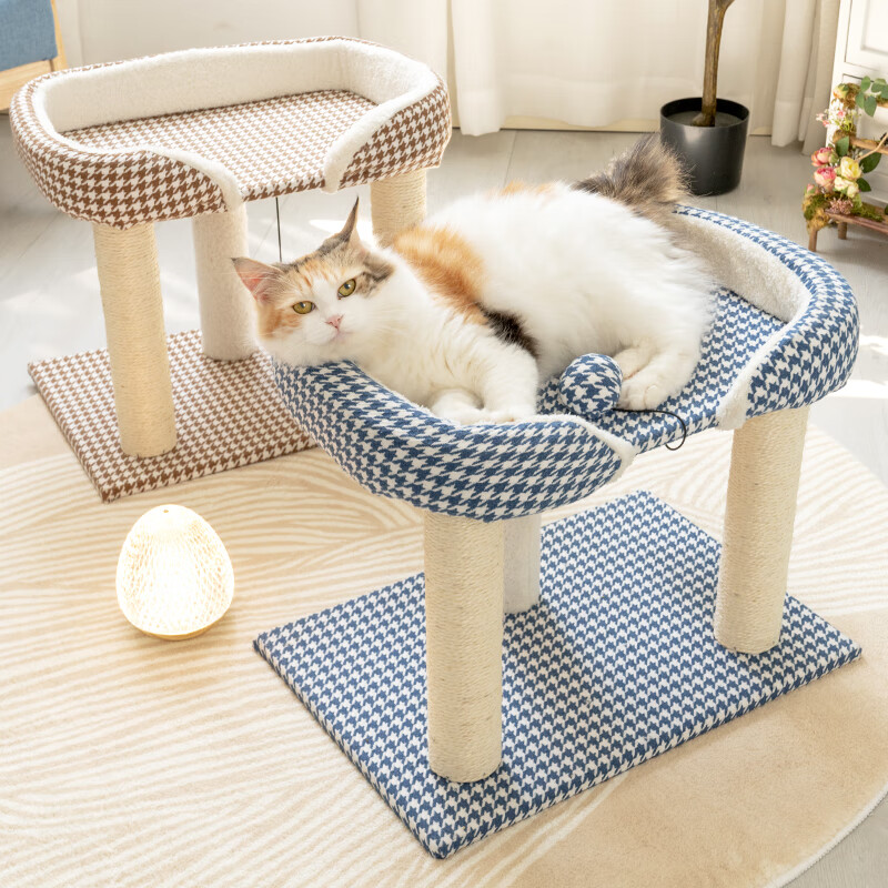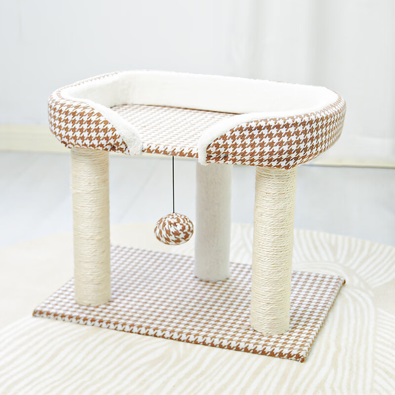 汤琪猫爬架猫窝一体豪华猫玩具猫架子剑麻宠物猫抓板猫爬树猫跳台猫抓柱宠物磨爪用品 咖色千鸟格
