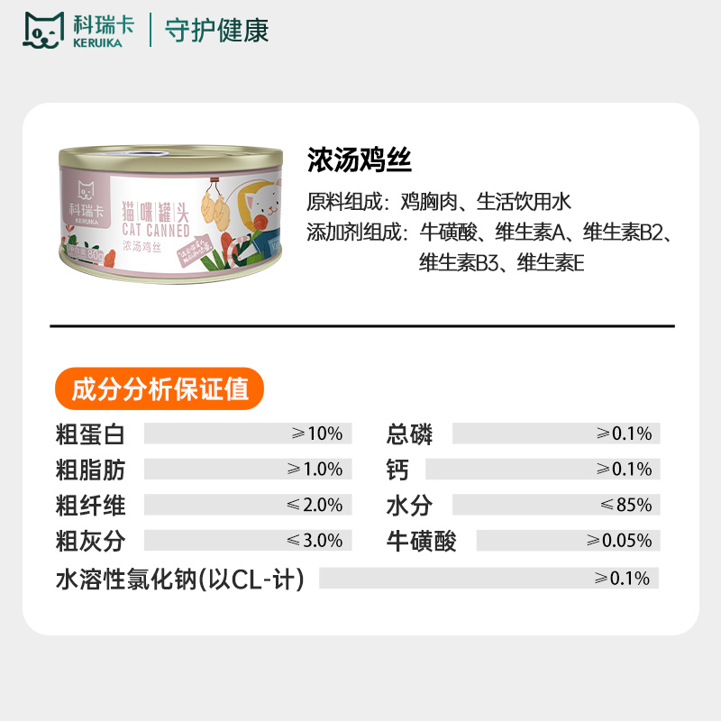 科瑞卡 猫咪主零食罐头白鸡胸肉低磷牛肉汤罐 浓汤鸡丝(80g×12罐)
