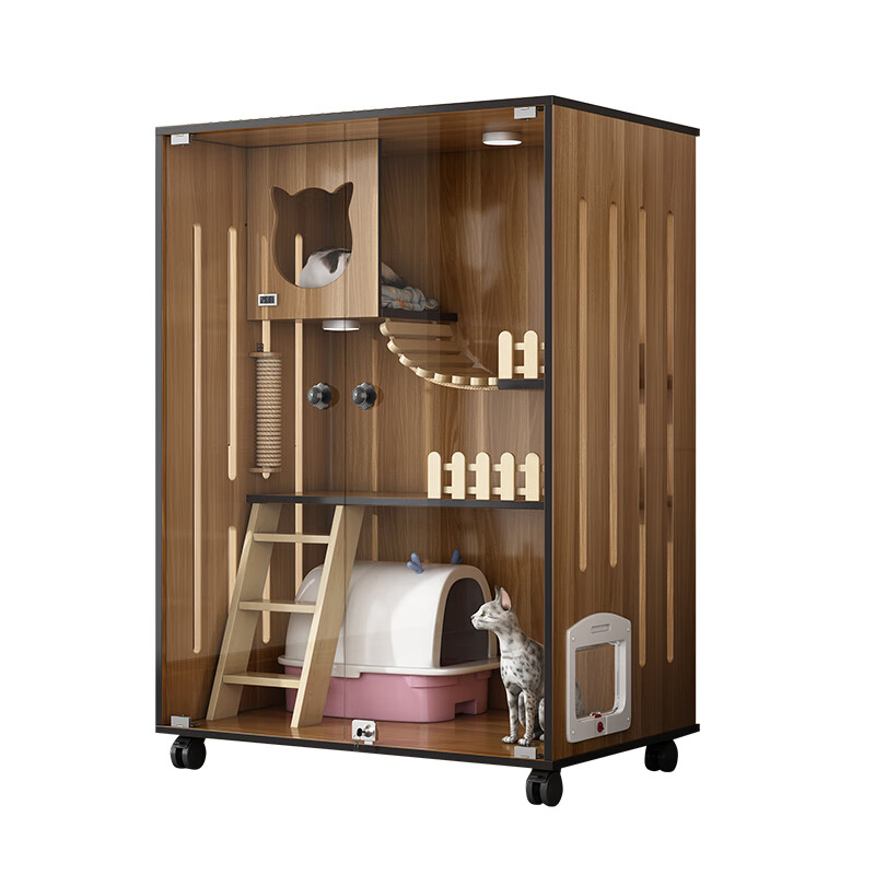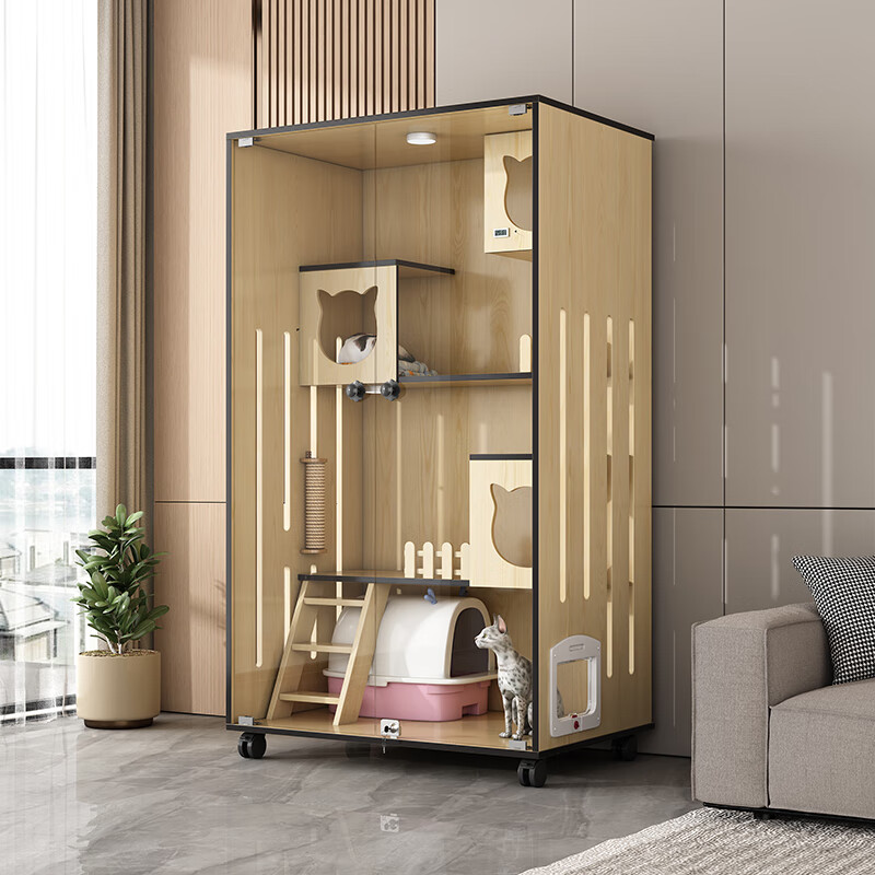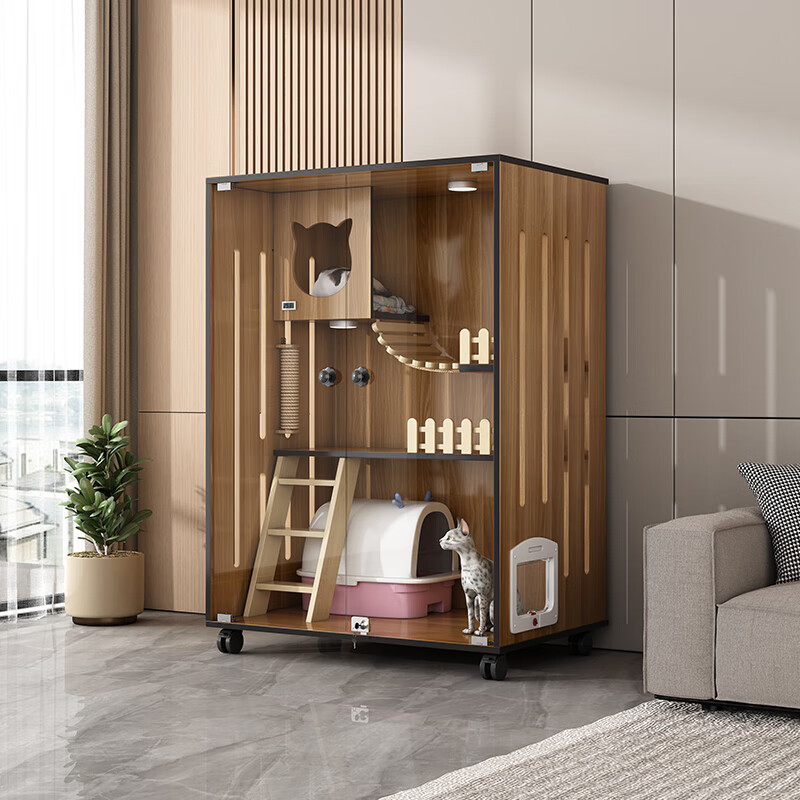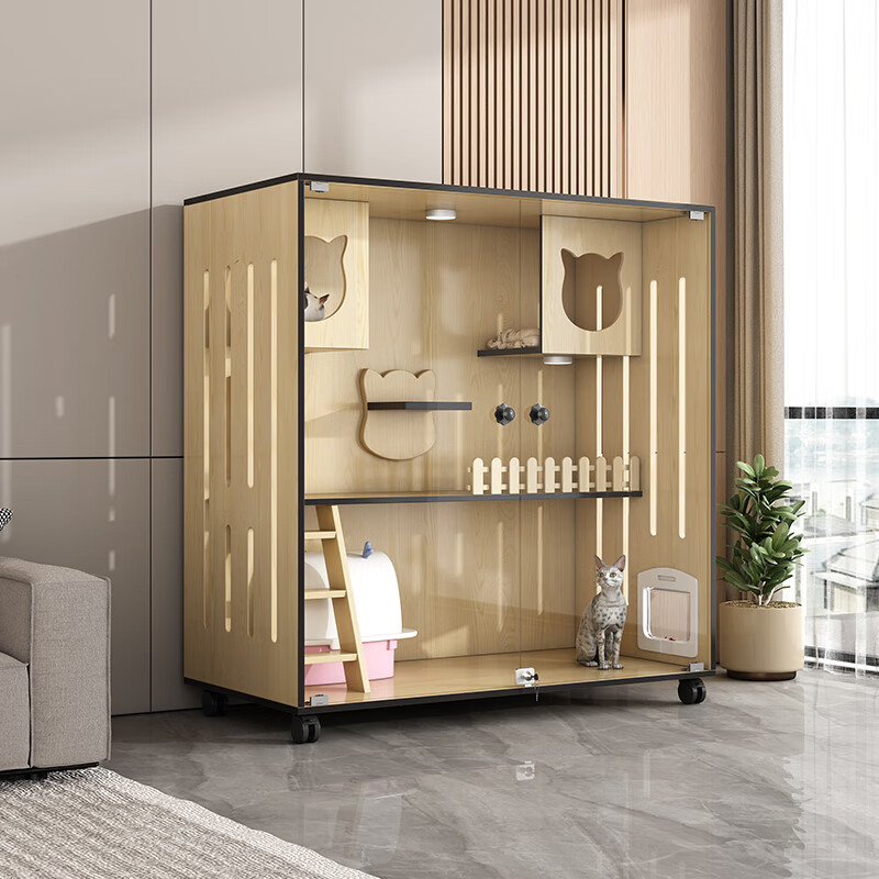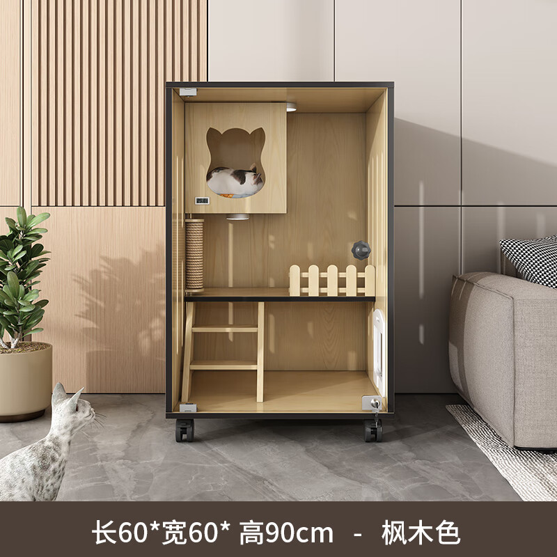 小米城堡猫笼子 木质猫笼双猫 家用室内猫舍猫屋猫柜猫咪房子超大自由空间 90*60*60枫木色 配货上门-安装