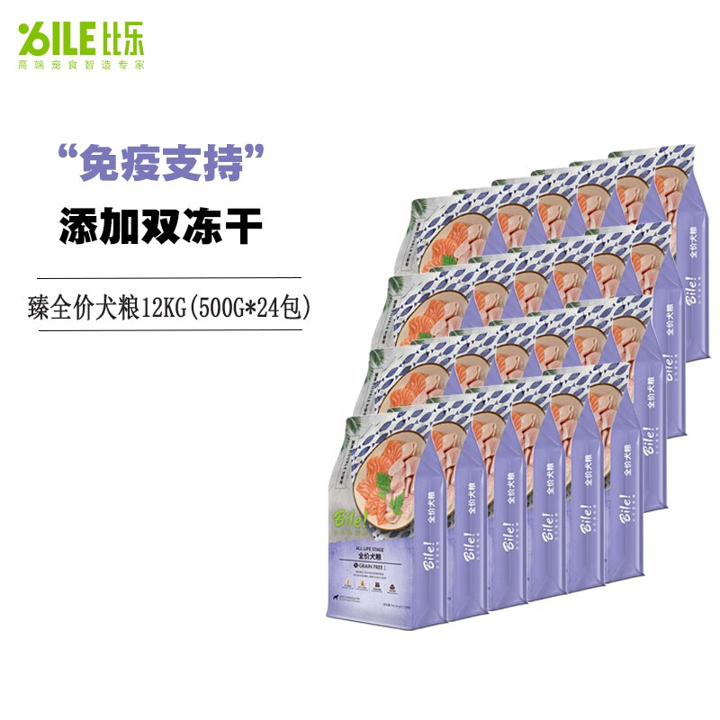 比乐原味狗粮 臻系列犬粮 低敏无谷 添加冻干 泰迪金毛哈士奇通用犬粮 原味臻全价犬粮500G*24包(12KG)