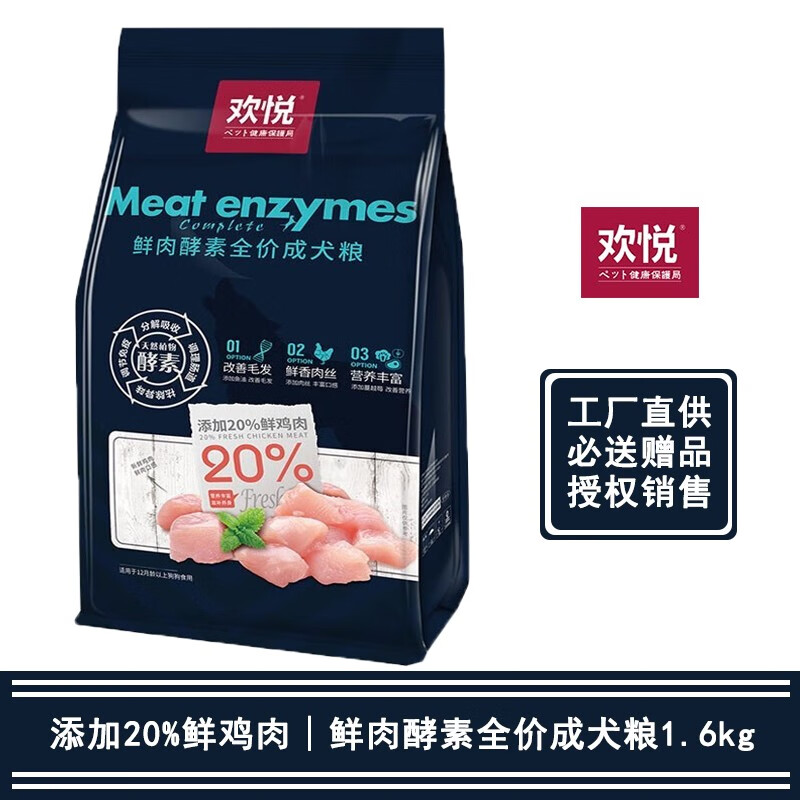 欢悦欢虎仔狗粮 鲜肉酵素双拼粮 全犬种通用粮 泰迪贵宾 全价成犬粮1.6kg