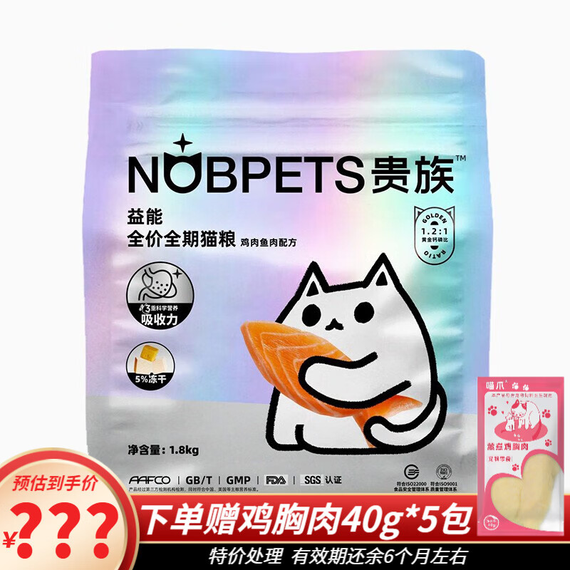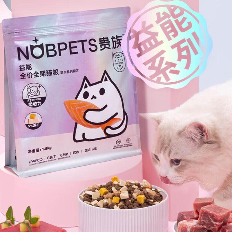 贵族猫粮 益能系列 全期全价猫粮幼猫成猫粮通用型主粮猫咪粮食 鸡肉鱼肉1.8kg